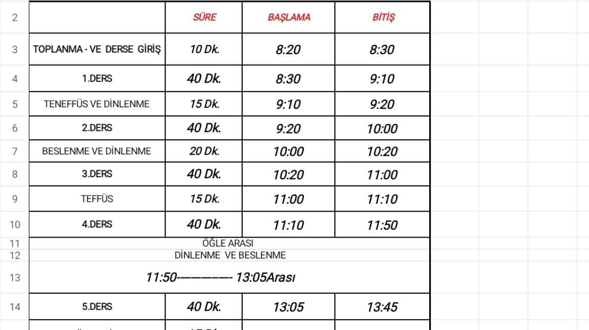 Okulumuz ders giriş -çıkış saatlerimiz öğrencilerimizin giriş - çıkış saatlerine uygun zamanları takip etmesini önemle rica ederiz